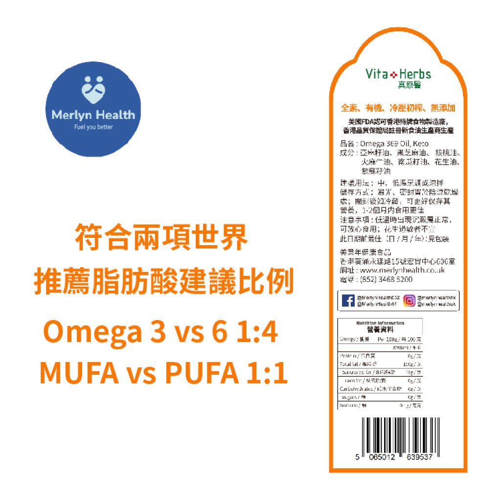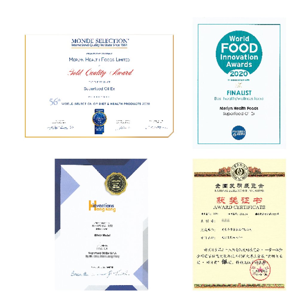 Vita Herbs 保健食物油源自多國獎項嘉許專利配方,符合兩項世界推薦脂肪酸建議比例,Omega 3 vs 6 1:4, MUFA vs PUFA 1:1, 2021年獲 ISSFAL 國際油脂及脂肪酸學會選出, 作為年度大會 “傑出配方” 發佈。