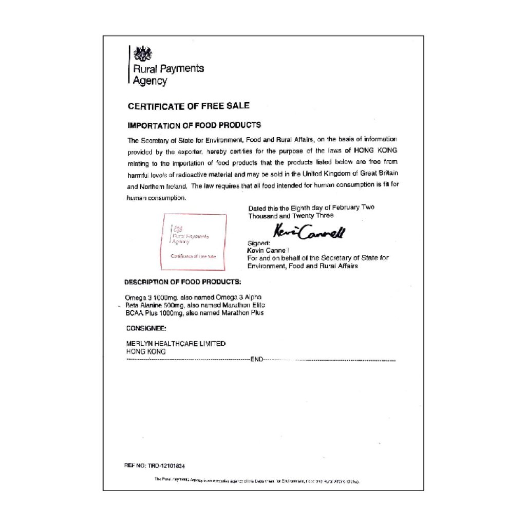英國 GMP製造,擁有英國政府頒發 Certificate of Free Sale 及英國 GBP 2百萬產品保險。